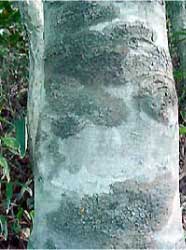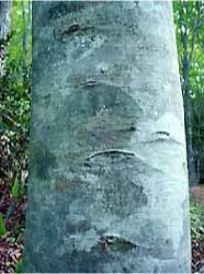 同じようなきにイヌブナというのがありますが、一番ちがうのは、葉っぱ です。葉っぱのうらに長い毛がたくさんはえているのがイヌブナ。ブナは葉脈(ようみゃく=葉っぱのスジ)に少しだけ毛がはえているだけです。それから、ミキや枝の色がちがっていて、ブナは白とはい色のまだらもようですが、イヌブナは黒っぽい灰褐色(はいかっしょく)ですが、大きな太い樹(き)になるとコケがついたりして、本当の色が分りにくくなります。材しつがブナより少しおとるから、イヌブナだとか。犬もたまったもんじゃぁないですねぇ。よくある名前ですけど。